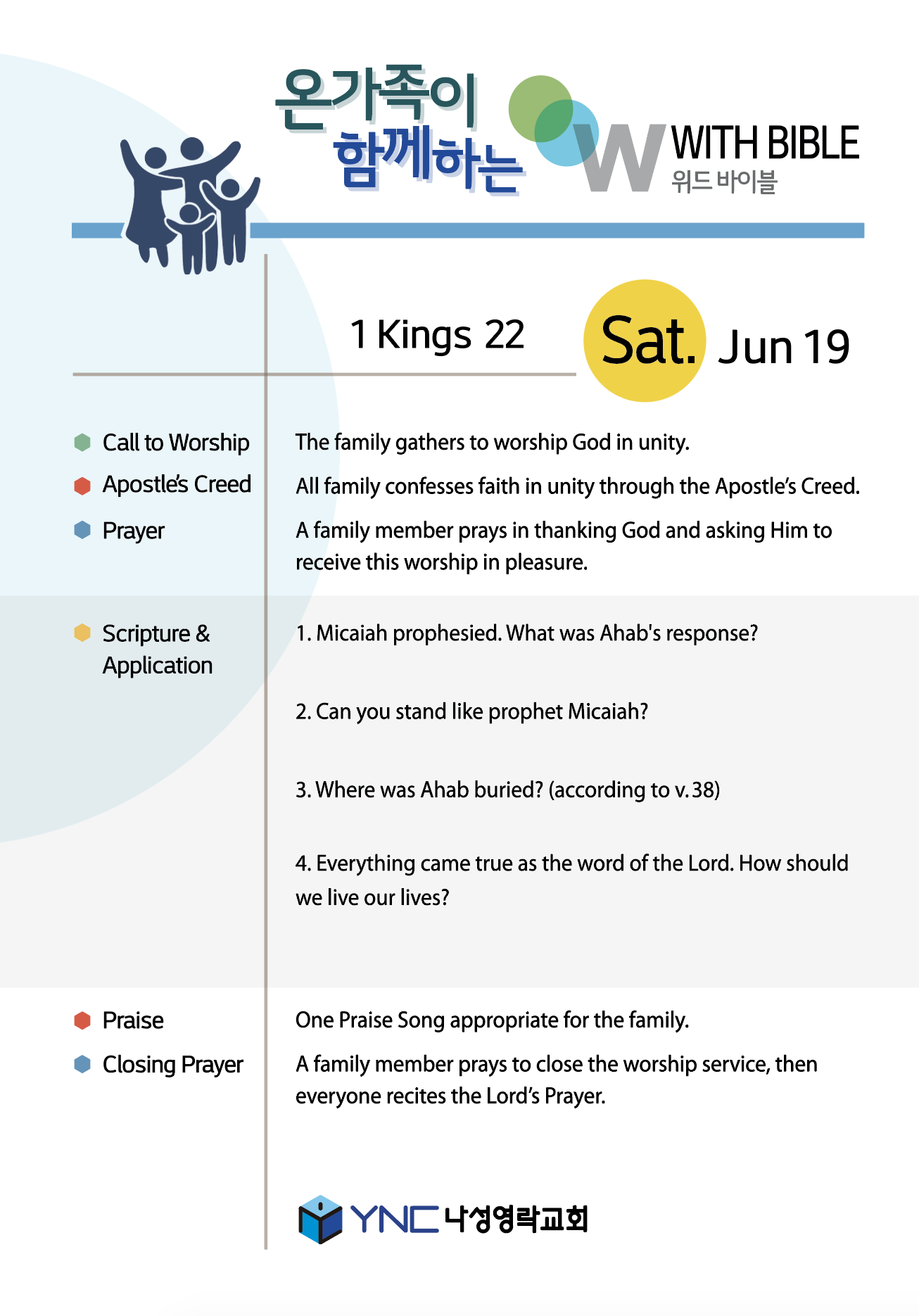 The family gathers to worship God in unity.