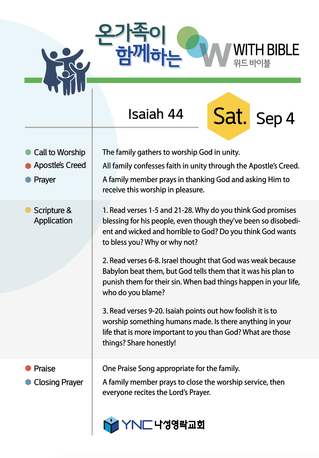 A family member prays in thanking God and asking Him to receive this worship in pleasure.
