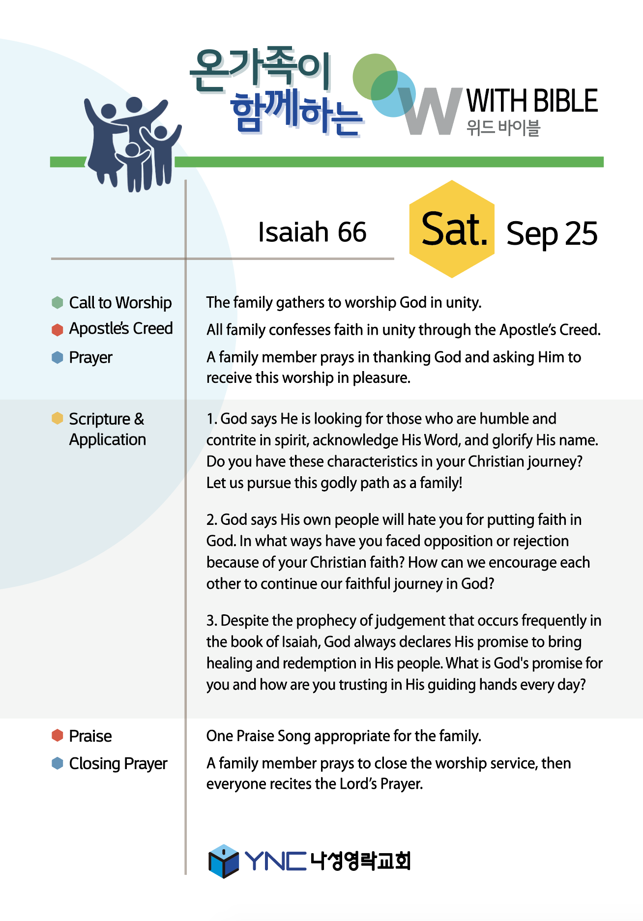The family gathers to worship God in unity.