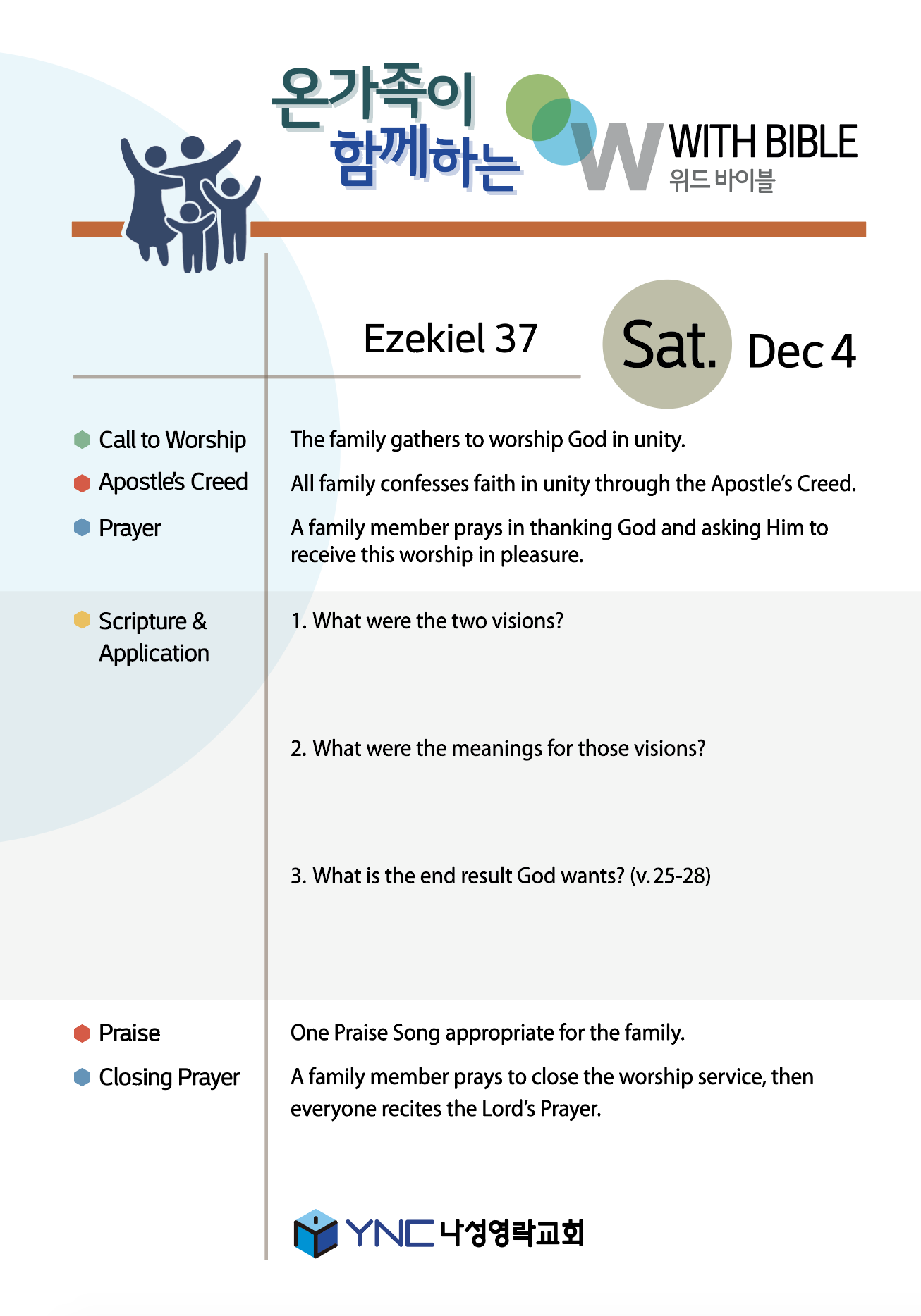 The family gathers to worship God in unity.