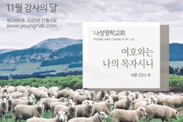 20201108 나성 영락교회 주일 예배 “여호와는 나의 목자시니” (시편 23편 1~6절) 여호와는 나의 목자시니 내게 부족함이 없으리로다 그가 나를 푸른 풀밭에 누이시며 쉴 만한 물 가로 인도하시는도다 내 영혼을 소생시키시고 자기 이름을 위하여 의의 길로 인도하시는도다 내가 사망의 음침한 골짜기로 다닐지라도 해를 두려워하지 않을 것은 주께서 나와 함께 하심이라 주의 Read more…