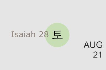 Welcome 함께한 이들을 사랑으로 환영하고 축복합니다. Worship 찬송가: 438장 “내 영혼이 은총 입어” 기도: 1. 오늘도 예수님의 놀라우신 은혜 가운데 구원받은 하나님 자녀로 거룩한 삶을 살길 소원합니다. 2. 우리 교회가 하나님의 변함없는 사랑 안에서 날로 회복되어 더 큰 영광을 돌려 드리길 소원합니다. 3. 올 한해 우리 가정의 가족들과 맡기신 생업이 성령님의 역사하심으로 날로 회복되길 소원합니다. Word 이사야 28 장 http://ync-growth.net/ync-growth-files/withbible/wb01_ko_2021-08-21.mp3 이사야서 1-12장에 걸친 1부와 이어서 13-27장에 걸친 2부가 끝나고, 이제 28장부터 이사야의 3부가 시작됩니다. 여호와는 에브라임의 교만함에 대해 심판을 선포하시면서 남은 백성들에 대한 축복을 약속하십니다. 당시에는 제사장과 선지자들로 대변되는 종교지도자들의 타락과 책임회피 등이 극에 다다른 상태였습니다. 나라의 지도자들 역시 하나님을 의지하지 않고 세상 열방을 의지하는데, 여호와께서는 이것을 죄로 여기시며 다시 한번 책망하십니다. 이어지는 비유에서 농부는 하나님을, 곡식과 씨는 그의 백성을 가리킵니다. 하나님은 보호하시고 인도하시는데, 백성들은 좋은 결실을 얻기 위해 연단에 연단도 받게 됩니다. Work – 에브라임은 어떤 교만함으로 심판을 선포 받게 됩니까? Read more…